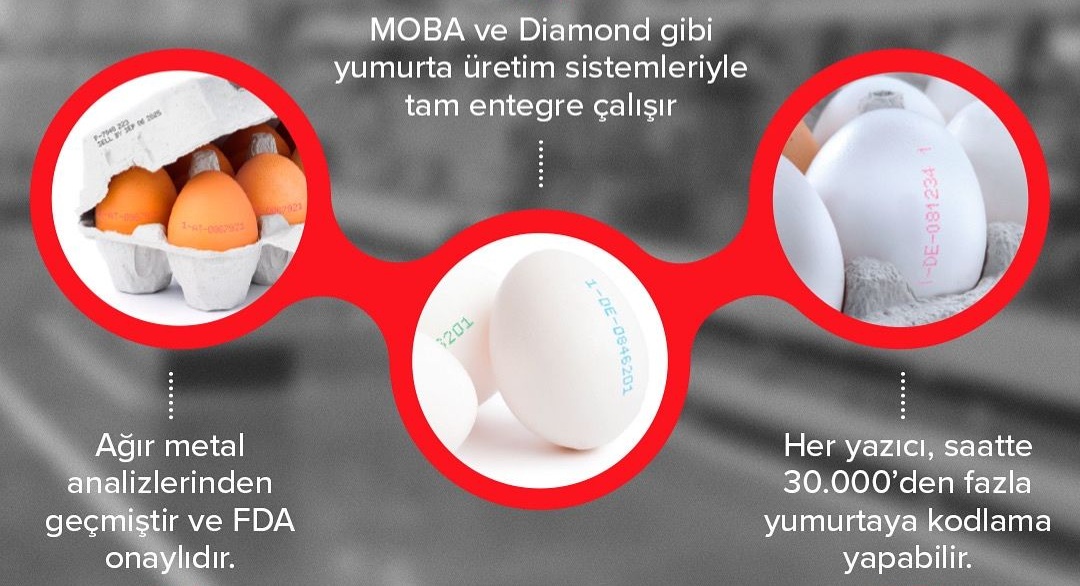 Leibinger’ın yumurta kodlama çözümleri, Teknosin Kodlama uzmanlığı ile Türkiye’de üreticilere ulaşıyor. Bu mürekkepler: